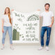 Monogrammed for you to insert your own prayer if you so choose, fleece blanket. This cute boho theme with an olive green rainbow and text on a white background states, Thank you, Lord, For Hugs and Laughter. Bless us and Keep us Ever After.