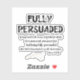 Christian Quote Stickers: Fully Persuaded quote with kjv bible verse. Romans 4. 20, 21 He staggered not at the promise of God through unbelief; but was strong in faith, giving glory to God; And being fully persuaded that, what he had promised, he was able also to perform. Antique inspired scroll accent.
