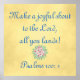 Praise the Lord with this lovely "Make a Joyful Shout" poster. Featuring a lovely gold parchment background, bright blue font, and a bouquet of flowers; Psalm 100:1 will encourage you today!