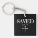 Christian SAVED keychain with John 3:16 and a large 3 nail cross. The text is in white with mixed distressed & calligraphy fonts. This modern faith design is the perfect gift or conversation starter to share and express your faith. #christian #religion #faith #saved #bible #Jesus