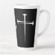 Christian SAVED mug with John 3:16 and a 3 nail cross. The text is in white with mixed distressed & calligraphy fonts. This modern faith design is the perfect gift or conversation starter to share and express your faith. #christian #religion #faith #saved #bible #Jesus