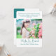 A beautiful photo Grad announcement with a scripture theme created especially for students graduating from Christian high schools, Academy's or Colleges.. The photos is designed to be borderless, so extends fully to either side of card. The back has a abstract circle design in coordinating colour. Also available in tan, blue & rose-pink. This card is designed to use the text colours provided (because you cannot customise the bible verse at the top)