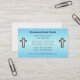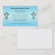 Christian business cards with silver cross images and printed text. Include the name of the church with address. List the names of the Pastor / leaders, etc., phone numbers / contact numbers and church website.