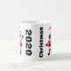 A year like 2020 will be remembered forever. As a little reminder that the pandemic doesn't go way for the holidays, even Santa is wearing his face mask. With this Christmas mug you will always have your little piece of memory from the year of the face mask. Design features a cartoon Santa in traditional Santa Claus suit. Santa is wearing his protective face mask with an ugly Christmas sweater pattern. On each side of the Santa in a face mask is text that says Christmas 2020 in bold, black font.