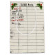 Retro library card with Christmas holly, berries, and stamped due dates for Christmas 2025.