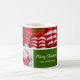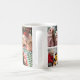 Celebrate the holiday season with this modern, personalised coffee mug. Mug features room for five of your favourite family photos. There's also an area with a green background and the greeting Merry Christmas (which may be edited) and your family name.