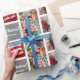 Christmas 5 Photo Collage with Family Name, Silver Wrapping Paper