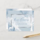 NEW! Affordable Lightweight Christmas Greetings with a beautiful Merry Christmas in scrolling calligraphy - in a silver frame - alcohol ink abstract design in shades of dusty blue with silhouette deer in white and a winter tree also in white - custom message on back