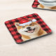 Fun coaster set for the person who loves their Akita dog. This one wears a red Santa hat for a stylish approach to the holiday season, and sits cutely against a red buffalo holiday plaid background to decorate your home or office with seasonal pet lover joy.
