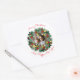 Christmas and New Year greetings, photo in wreath Classic Round Sticker