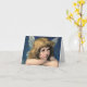 Christmas Angel on blue background with golden stars. Customisable message. Inside message: Wishing you a Merry Christmas. This message can be changed to anything you like.