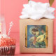 Elegant and classic design elaborated from a Renaissance painting. Melozzo da Forli ,musical angel in blue green colours,detail of a fresco c.1480 with old brown parchment effects.