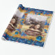 CHRISTMAS ANGEL,RED BLUE FLORAL PARCHMENT AND GEMS WRAPPING PAPER