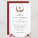 Invite guests to your holiday wedding with this customisable winter wedding invitation stationery. It features watercolor wreath of antlers, red poinsettias, white roses, pine needles, pinecones and other botanical accents. Personalise by adding your wedding details. This Christmas wreath invitation is perfect for winter weddings and Christmas weddings.