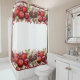 Pretty Christmas shower curtain has a matching bath mat. Created with a beautiful garland made up of bright red apples, pine cones, holly leaves and red berries.