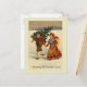 Designed by Susan Epps Oliver. Vintage Christmas image of two children walking through the snow. The boy carries a Christmas tree and the girl a basket full of shiny red apples. Their message is "A Merry Christmas to You".