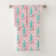 Christmas Aqua Blue Pink Tree Pattern Bath Towel Set