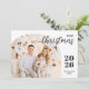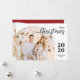 Elegant and modern Christmas greeting card featuring a minimalist design displaying your favourite family picture inside a trendy arch frame. Easily customise with your name and the current year in stylish black serif fonts. The back of the card features a second customisable arched picture and a customisable greeting message.