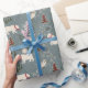 Christmas arctic animals polar bear on blue grey wrapping paper