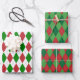 Christmas Argyle White Green and Red Wrapping Paper Sheet