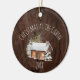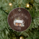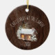 Celebrate Christmas at the cabin this year! This ornament features a rustic wood background image. On top of the background is a watercolor log cabin, trees and snow. The words "Christmas at the Cabin" arch above the barn, and below the illustration is room for you to customise the year. Upload your photo to the back of the ornament and add text!