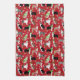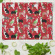 Cute Australian Shepherds / Aussie dogs in black, brown and merle coats sit and stand in festive holiday outfits. Santa hats, antlers, sweaters on a holiday background with scattered ornaments.