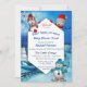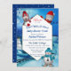 A Blue winter Holiday scene with a well wrapped showman for a this invitation card to personalise