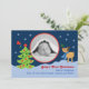 Cute and sweet Christmas photo card. Perfect for Baby's First Christmas. Features a winter scene with Rudolph and a Christmas tree. Add your own picture and wording.