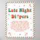 Add a festive touch to your event with this Personalised Christmas Baby Shower Late Night Diapers Poster, a fun and practical game sign for guests to enjoy. Perfect for christmas baby shower ideas and unique december baby shower themes, this design brings holiday cheer to your celebration. Whether you’re planning a cosy christmas baby shower or looking for creative december baby shower ideas, this poster fits beautifully with the santa baby baby shower theme. Celebrate your little santa baby in style!