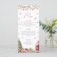 Elegant Christmas baby shower menu card featuring watercolor artwork of Santa Claus, a decorated Christmas tree, wrapped presents, snowflakes, and festive holiday lights. Perfect for a Merry Little Baby Shower or winter celebration. This customizable menu adds a charming touch to your table settings and coordinates beautifully with matching invitations, signs, favor tags, table numbers, and décor from the Christmas baby shower collection.