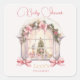 Christmas Baby Shower Pink Nutcracker Watercolor Square Sticker