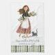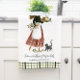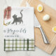 A charming holiday tea towel featuring a vintage Christmas baking lady carrying warm cookies and cocoa with her friendly gray cat by her side. Soft watercolor textures, a nostalgic plaid skirt, and seasonal greenery create a cozy festive feel that is perfect for holiday kitchens. Personalize the name to make a thoughtful gift for bakers, hostesses, or anyone who loves Christmas cooking and pretty seasonal decor. This towel adds a warm touch to everyday baking and holiday traditions.