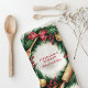 Christmas baking wreath made with rolling pin, wooden spoon, cinnamon sticks, and ornaments. Festive circle frames holiday kitchen scene in red green golds. Absorbent cotton towel soaks up spills or dries hands fast. Hangs straight on drawer pull or oven handle. Crafters stock for holiday markets or family swaps. Name area takes up to 12 characters in merry font. Coordinates with Printable Pretty SVGs for cookie tags or aprons. Colours hold strong through machine washes and heavy use. Wreath shape nods to cookie cutters and bundt pans. Towel covers counters during pie prep or wraps fresh loaves. Small biz sellers bundle with mugs for gift sets. Stitched edges block fray over years. Red berries and pine add classic cheer. Production ramps quick for December peaks.