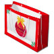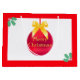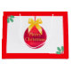 Red Christmas ball with yellow ribbon at the centre on white background gift bag. Text can be customised.