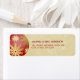 Customisable Holiday return address labels with vintage Christmas theme and colours: red and gold Christmas ball with snowflakes pattern on golden background.