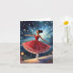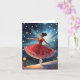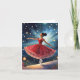 This Christmas card features a whimsical scene of a ballerina dancing in a red dress.