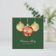 Customisable Holiday party invitation with traditional Christmas theme and colours: red and gold Christmas balls with snowflakes pattern on dark green background.