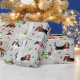 Cute Basset Hound dogs with brown, black, white and lemon coats dressed in festive holiday outfits, Santa hats and argyle sweaters with scattered Christmas ornaments.