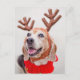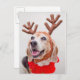 Christmas Beagle dog with festive reindeer ears Holiday Postcard