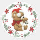This lovely Round Sticker features a Christmas wreath and a cute teddy bear wearing a santa hat and holding a bell.