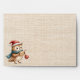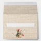 Beige faux burlap as background. Personalise and add a name and your return address. The name is written with a modern and trendy handlettered style script. Decorated with a cute owl delivering an envelope.