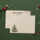 Beige faux burlap as background. Personalise and add a name and your return address. The name is written with a modern and trendy handlettered style script. Decorated with a watercolored Christmas tree.