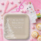 Christmas beige gender neutral baby shower paper plates with a cute whimsical fun party plates for a festive Holiday party.