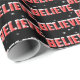Christmas Believe text with snowflakes Wrapping Paper