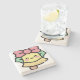 The coasters are gorgeous, a quality feel and heavy weight. They look like a precious archeological find. A rustic stone juxtaposed with a modern floral black and white print. I like the way the print goes slightly imperfect on the cut stone edges giving them a kind-of natural beauty.