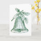 This design features a Christmas-themed illustration of a green bell adorned with a sprig of holly, which is a traditional symbol of the holiday season. The illustration comes originally from a Canadian magazine published in 1919.