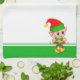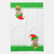 Christmas Bells and Cute Elf on Green and White Tea Towel