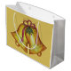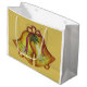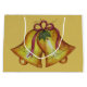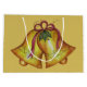 Festive Christmas bells decorate this holiday gift bag. This bag is great for all ages. The design is from original art.