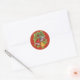 Christmas sticker with bells in red, blue, and gold on holly and berries.