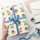 Christmas bells, poinsettia and cute elf ornament wrapping paper